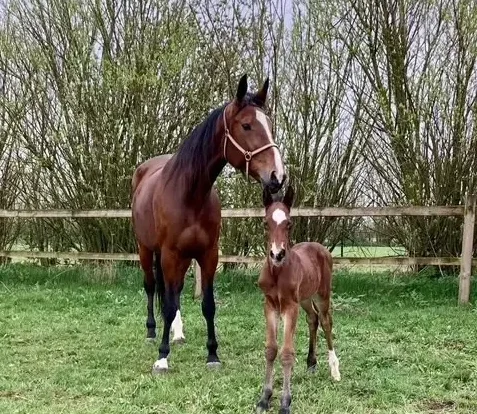 6 y/0 HETI (DK) (186.779 SEK-14,0K) with a foal (colt) by her side after Calgary Games